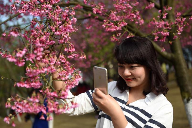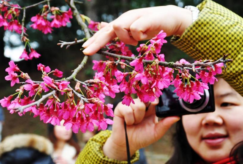 又名旅客在南宁市石门丛林公园拍摄樱花(2016年2月28日摄)。