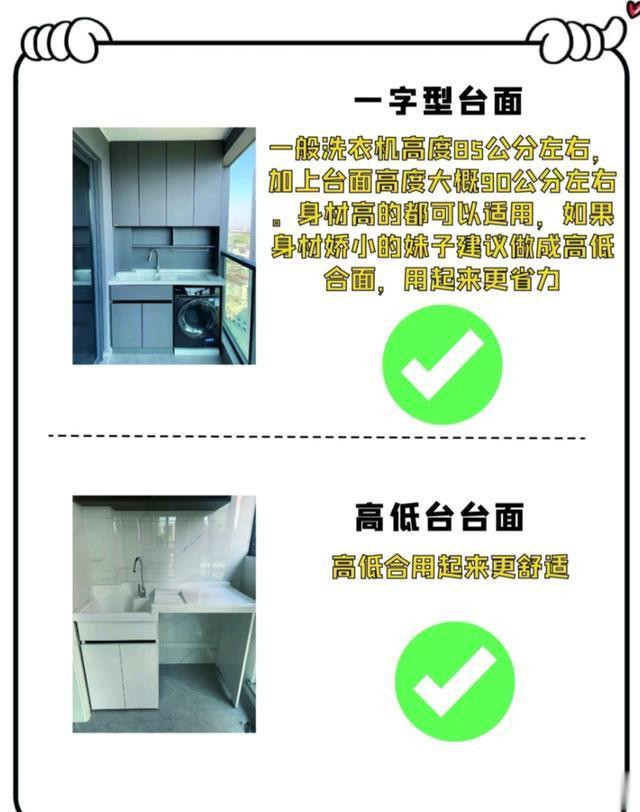 洗衣机区域的台面作念低,大致85厘米,刚刚好。